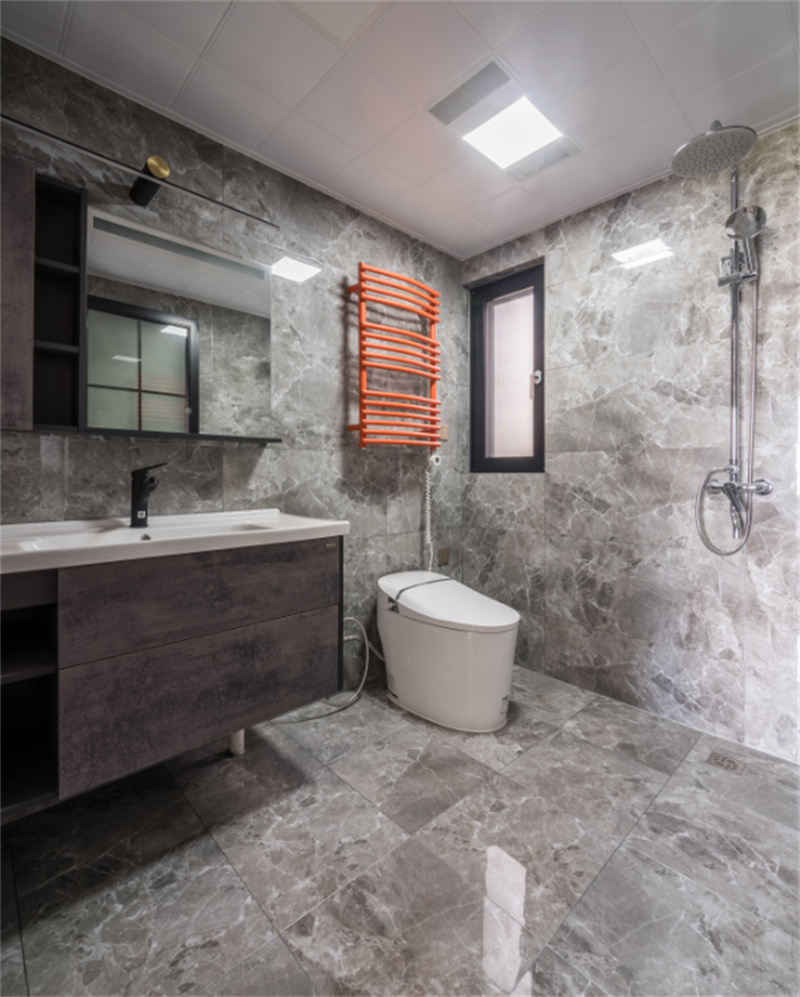 意式極簡的設計中,浴室也同樣追求極簡,但更加注重舒適和體驗感,設計師加入的智能馬桶、可調節淋浴花灑等智能家居設計,讓生活更貼心暖心。