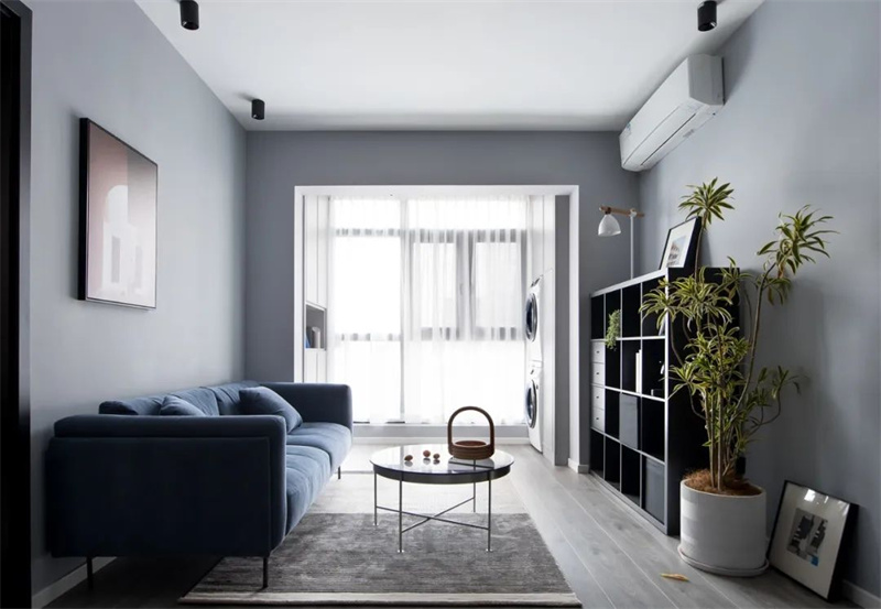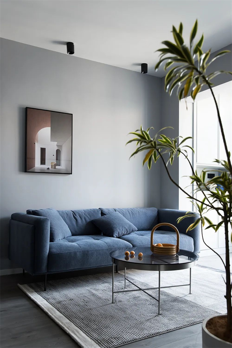 客廳采用無主燈設計風格,在頂面四周設置筒燈,布置出一個簡潔大方的空間;再搭配上現代舒適的家具,讓空間充滿時尚優雅的氣質。柔軟的沙發搭配精致的咖啡桌,墻上掛著一些抽象裝飾畫,為空間增添了一些藝術氣息。