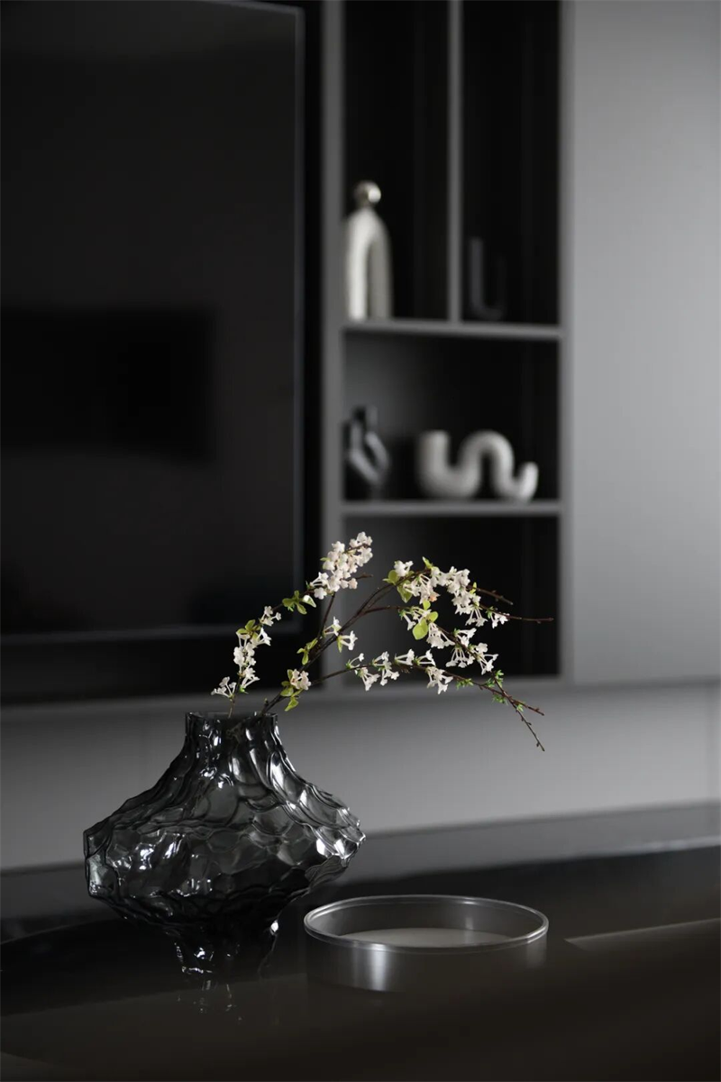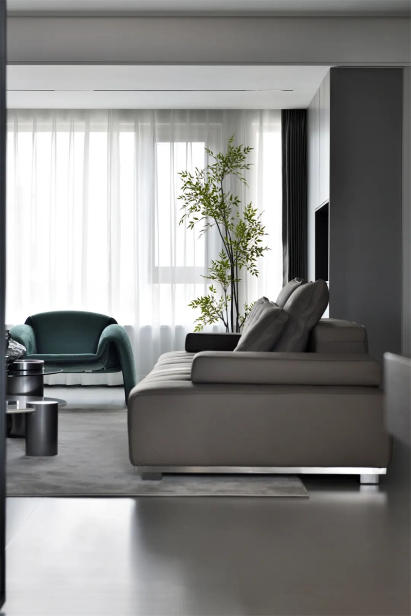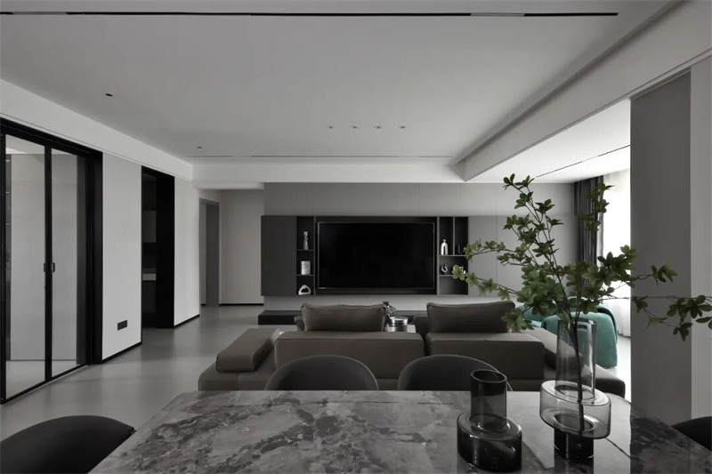本案以現(xiàn)代極簡(jiǎn)為設(shè)計(jì)語(yǔ)言,摒棄冗余裝飾,用純粹的線條、克制的色彩與精煉的材質(zhì),構(gòu)建出一個(gè)靜謐而有力量的空間。黑白灰為主調(diào),輔以一抹綠意點(diǎn)綴,既體現(xiàn)秩序之美,又不失溫度與呼吸感。從空間布局到細(xì)節(jié)處理,每一處都遵循“少即是多”的原則,讓居住回歸本質(zhì)——簡(jiǎn)潔、從容、自由。